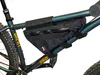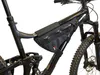 The Choss is the newest mountain bike specific wedge frame bag in our fleet. Made with 100% recycled content fabrics, our famous beefy zipper and stretch panel combo, and silicone coated hook and loop attachments, the Choss is ready to be put through the wringer. The main compartment houses a mesh pocket and is hydration system compatible. Stash smaller items you want handy in the flat left side pocket that also features a wire port. The Choss comes in two sizes that fit most hardtail frames and some full suspension bikes.