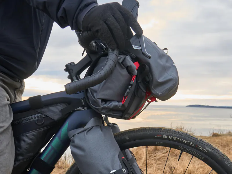 It is recommended to check tyre clearance prior to use, especially on bikes with front suspension forks. Bag contact with a tyre can ruin your day. Tyre damage to the bag is not covered by warranty.