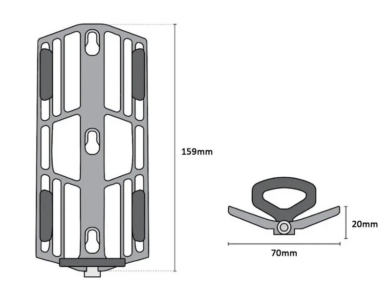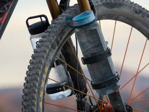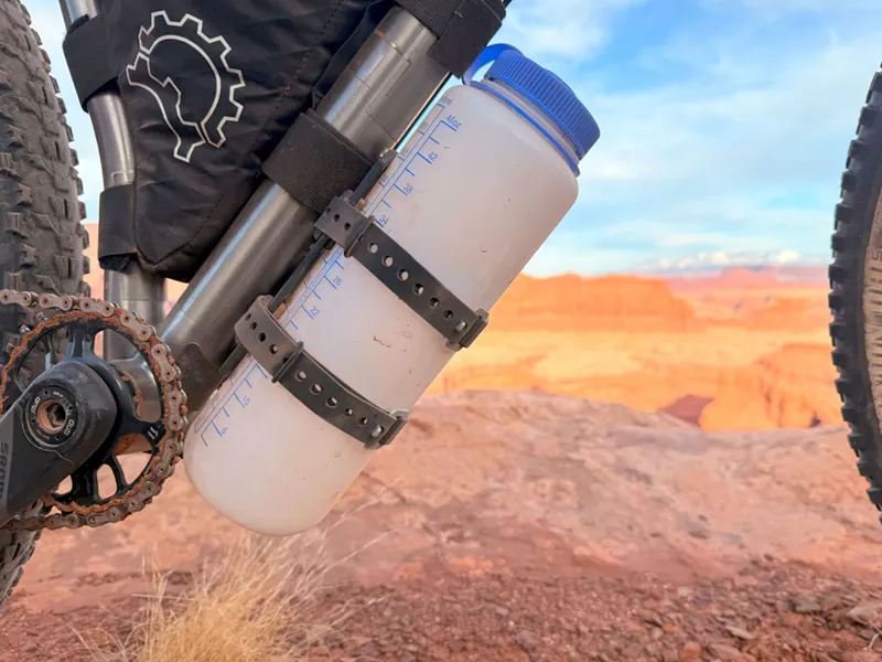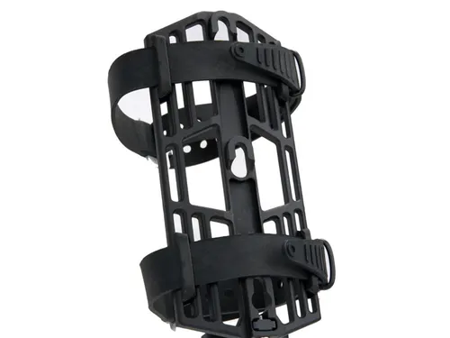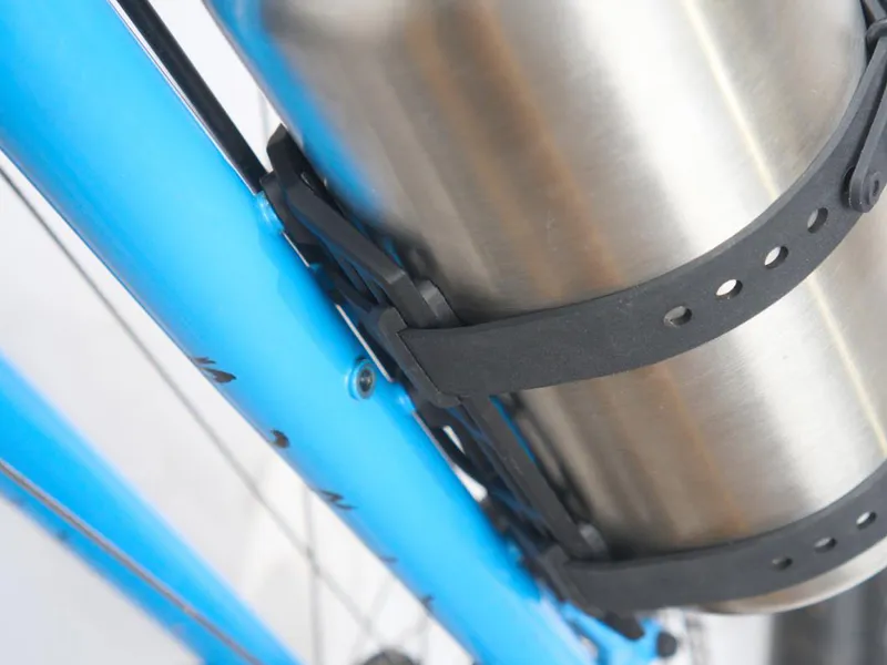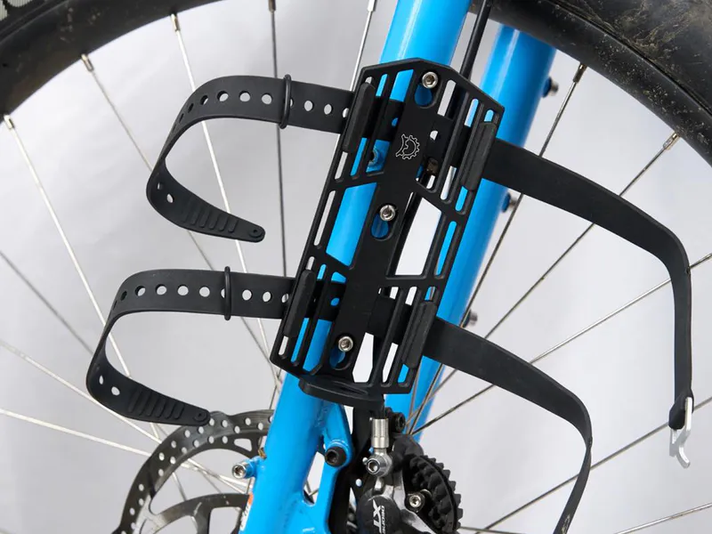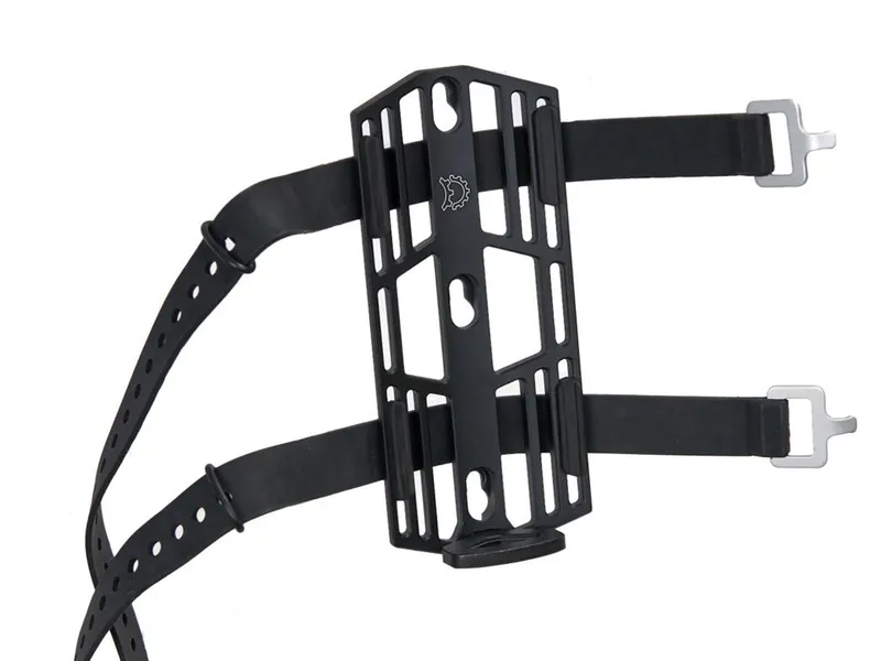 At the core of the Tarsier are pairs of integrated, adjustable TPU pads that cradle hard-sided bottles and canisters securely and quietly. On the back of the cage, the pads also act as strap guides: they hold the included 450mm straps securely in place when unloaded. As opposed to cages with straps threaded through the frame, the Tarsier’s straps wrap around the entire platform, maximizing cage-to-cargo contact for ultimate stability.