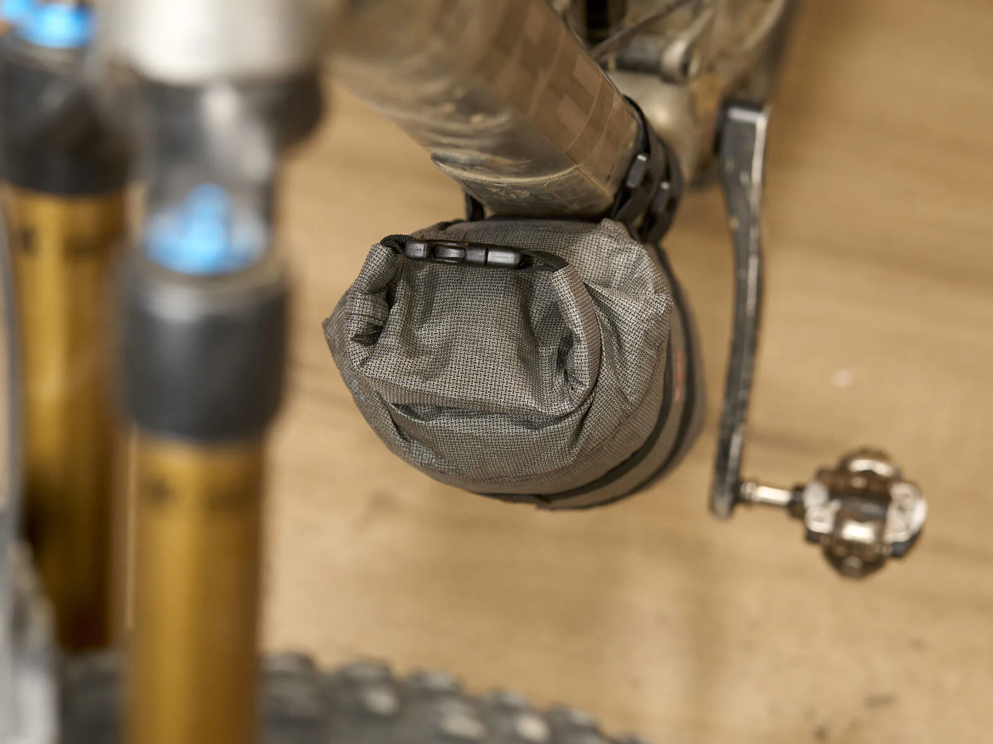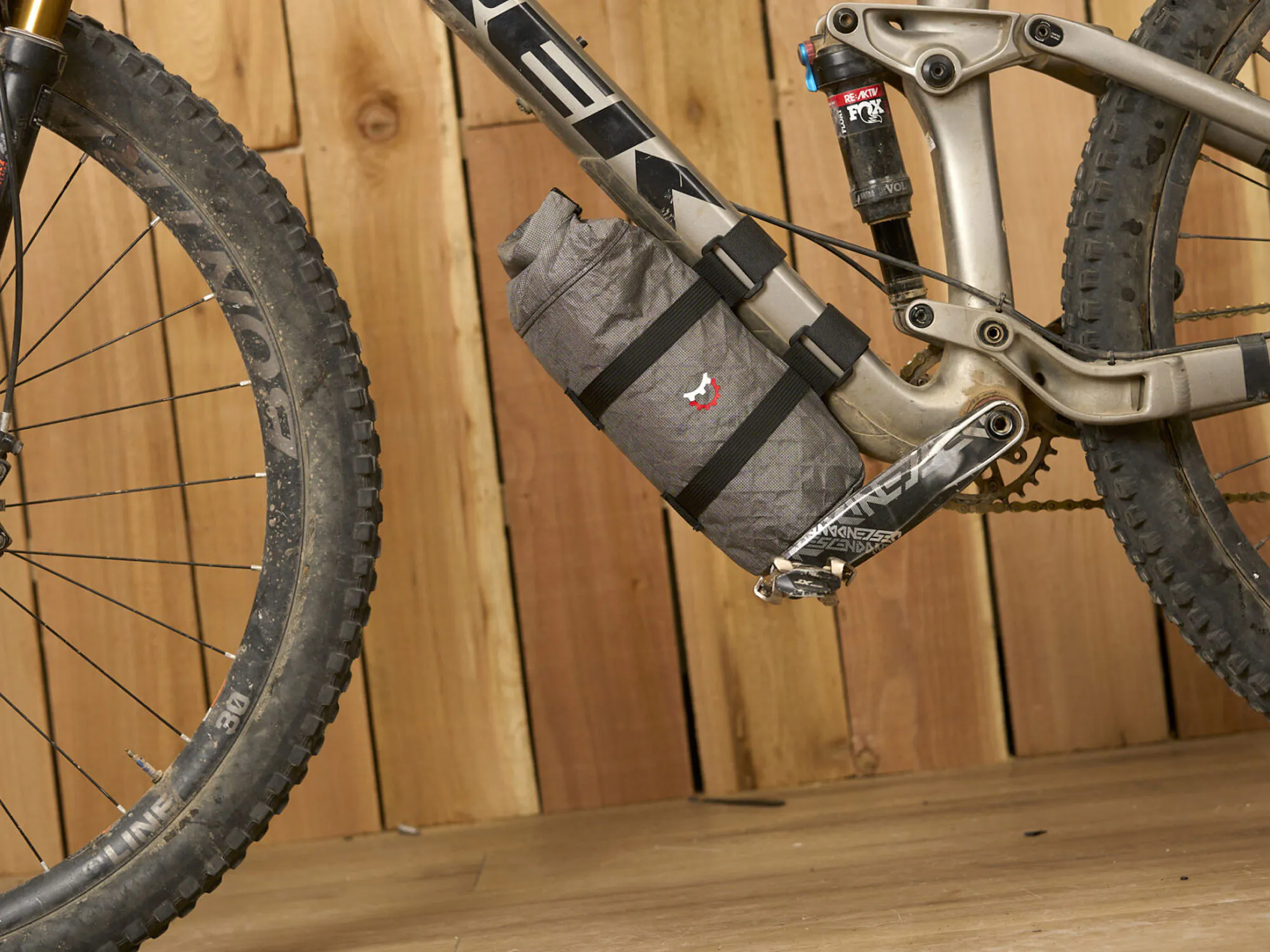 The Ultra Joey is a lightweight downtube storage solution that adds fully enclosed storage without the need for a cargo cage. Built with Challenge Ultra 200X fabric, it features a grippy compression-molded mounting pad and a pair of silicone-backed straps. This combination provides excellent stability for off-road use.